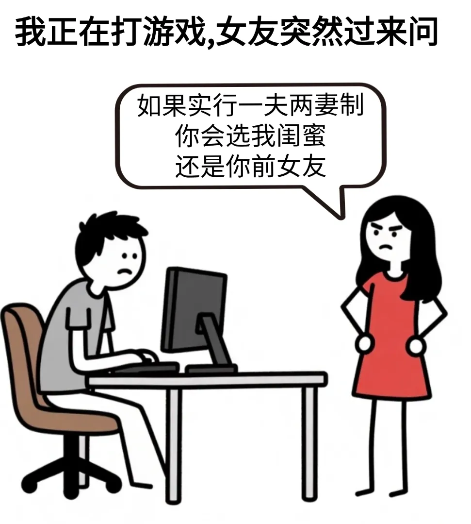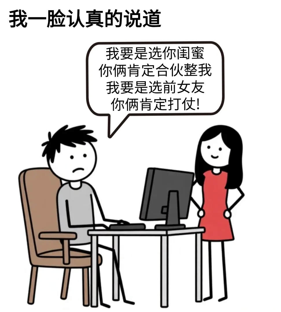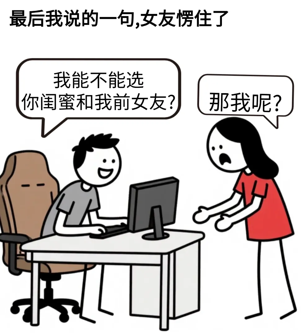 开心漫画:女友问:如果是一生选俩制,你会选我的闺蜜,还是你的前女友,我:能不能娶你闺蜜和我前女友,女友:那我呢?