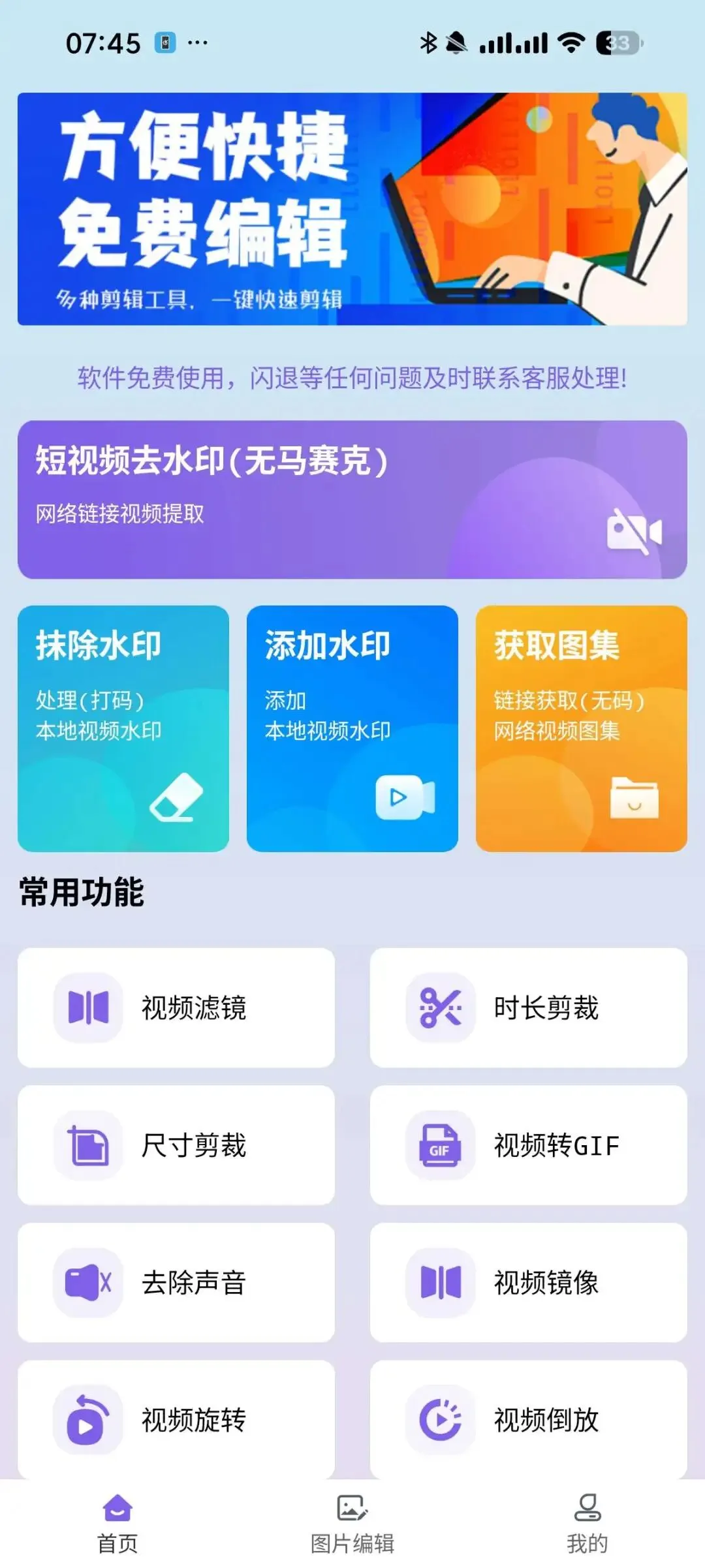 这款软件不止能去水印,还内置了丰富的视频和图片编辑工具,满足多样化的内容创作需求,基础的剪辑、裁剪、拼接、滤镜,图片优化、格式转换等功能一应俱全,不用额外下载多个编辑软件,一个工具就能完成从素材下载到后期编辑的全流程。