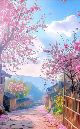麦苗垅垅青绿多,杏花朵朵笑声稠。