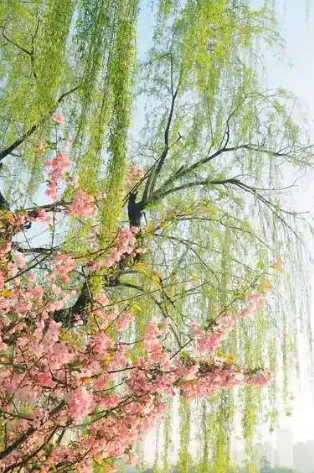 春日时常翻脸。俄尔聚阴云,继而昏暗。随即雨丝悬,珠帘浮泛。草木欢欣,报恩动情感。