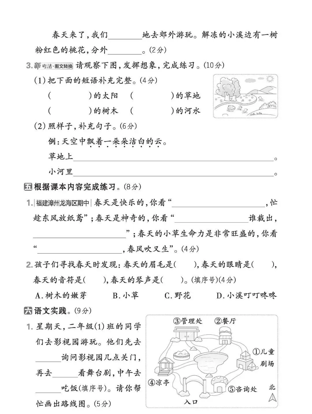 【教辅资源】新版二年级下册语文《第一单元测试卷》(共5套,有答案),电子版可打印