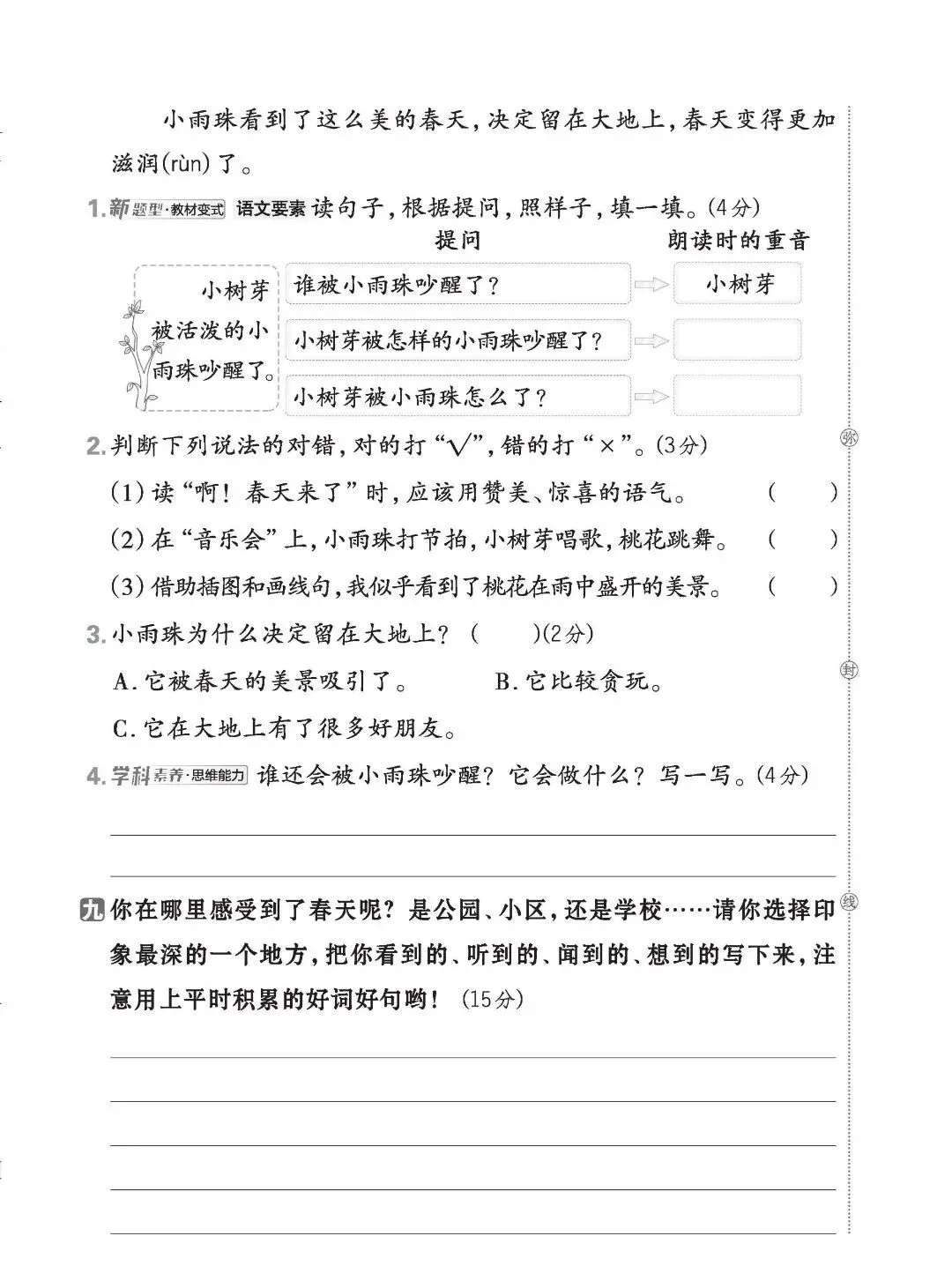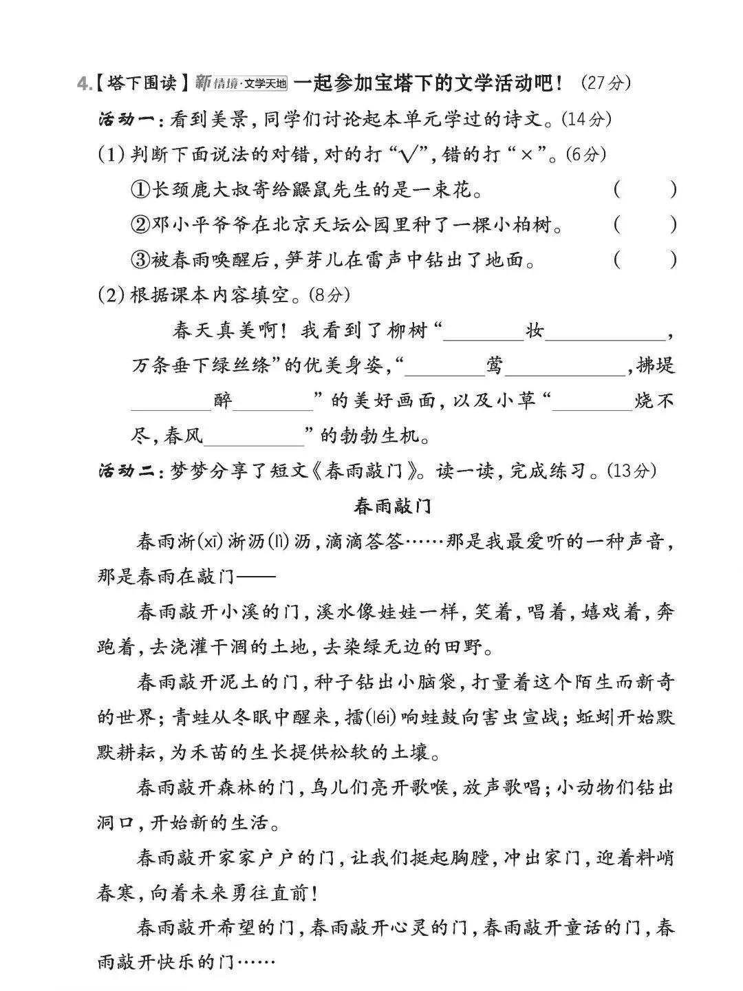 26年新版二年级下册语文《第一单元测试卷》