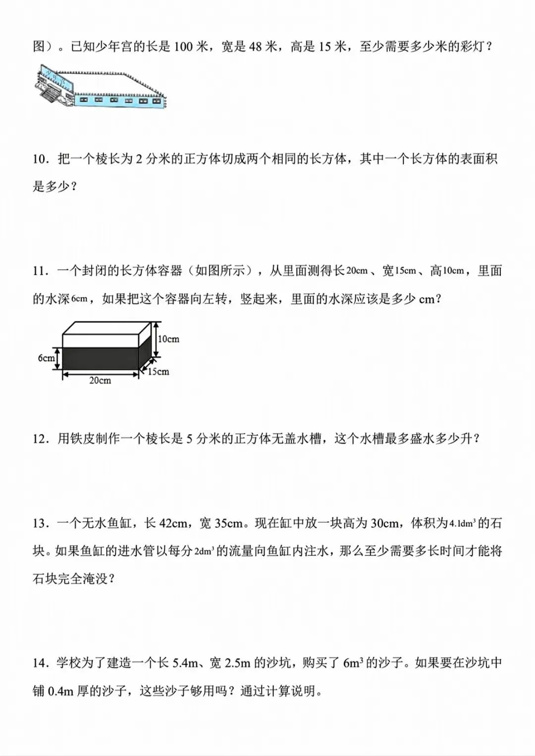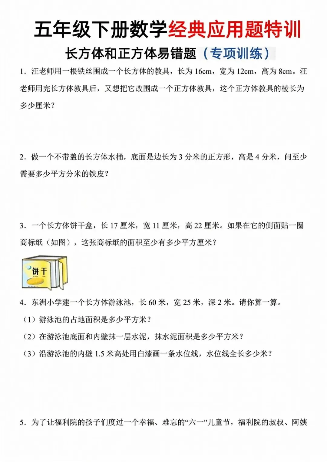 可下载丨26春五年级下册数学长方体和正方体易错应用题,电子版可打印