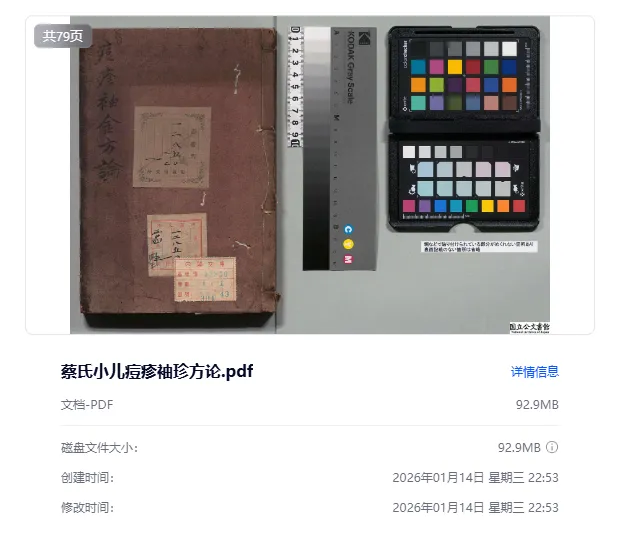 百度网盘「8437_蔡氏小儿痘疹袖珍方论」
