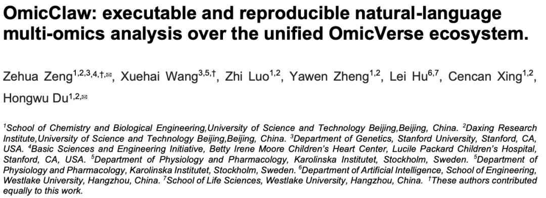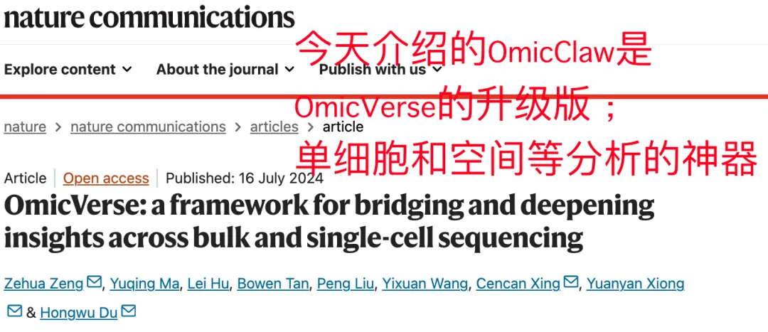 📚 文献引用:OmicClaw: executable and reproducible natural-language multi-omics analysis over the unified OmicVerse ecosystem, 2026.