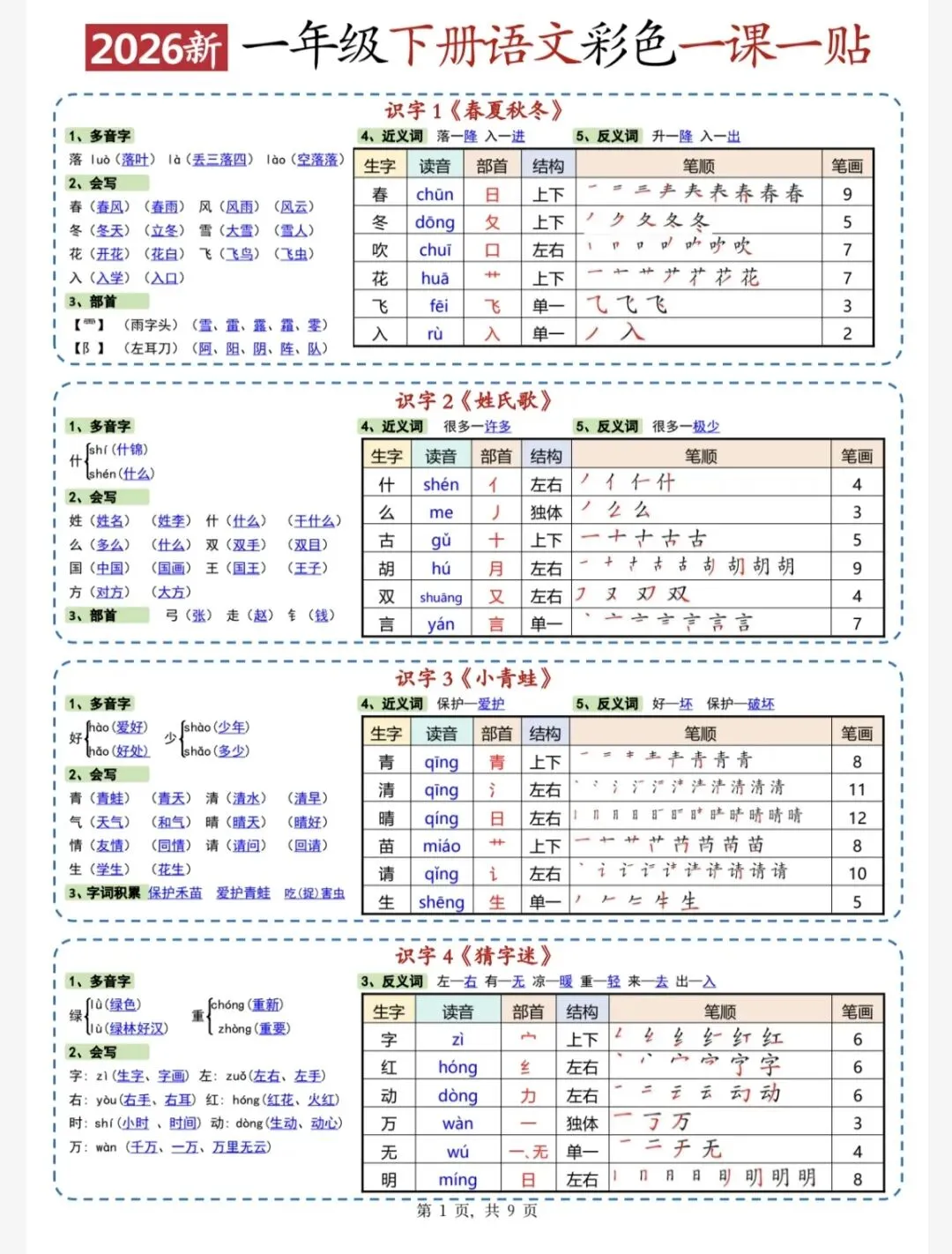 🏅2026春一年级下册语文1-8单元彩色一课一贴_.pdf