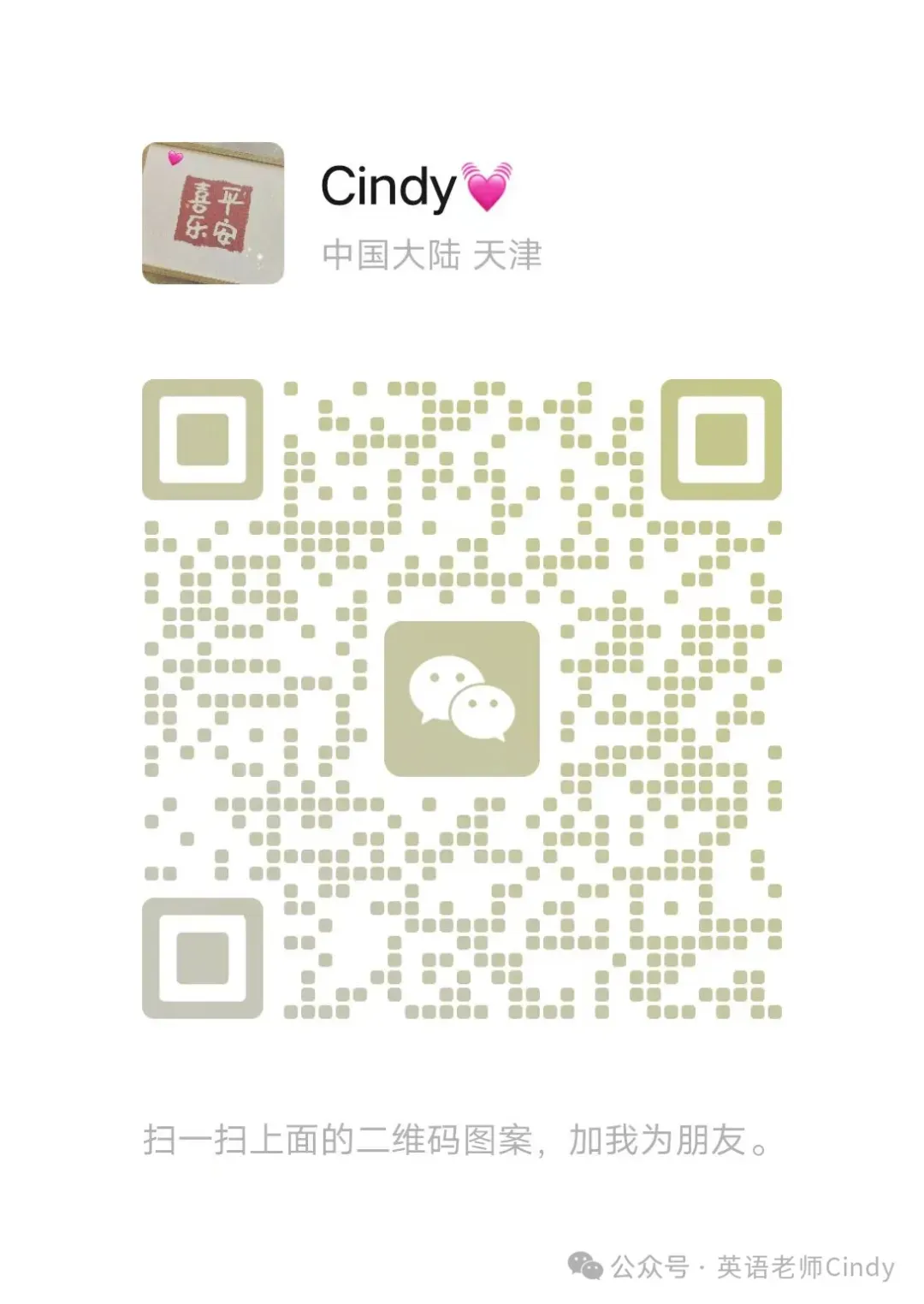 Hi~大家好,很高兴在这个公众号和大家相遇。我是Cindy,一名英语教师。我会在工作之余努力保持每天更新英语学习资源,感谢大家的支持,爱你们哟~比心💕