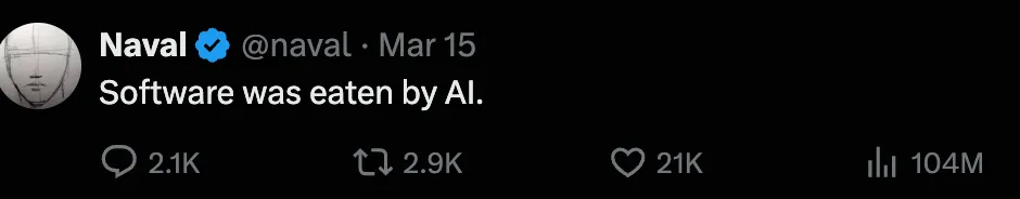 但现在,这个前提正在变。越来越多的任务,已经不再是“人先理解界面,再完成操作”,而是在变成“人先说出意图,再由 AI 理解任务、补齐上下文、调用工具、返回结果”。这才是我理解 Naval 那句 “Software was eaten by AI” 的方式。
