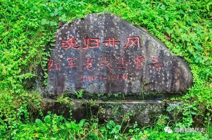 老红军曾志同志曾经是医院的党支部书记,那天因为她外出开会了,幸免于难,但是他的战友却全部牺牲了。根据她的遗愿,她的部分骨灰埋在小井红军医院旁约100米的小山坡上,小小的土堆前一块小石碑上写着“魂归井冈——红军老战士曾志”。坚强的革命战士寓伟大于平凡之中,令人肃然起敬。就在小井红军烈士墓左侧一个小山丘上,一块普通的墓碑上镌刻着“魂归井冈——红军老战士曾志”11个字。矮小的墓碑平平常常,让你很难与其主人的传奇人生联系起来。曾志上井冈山时只有17岁,已经是经过湖南衡阳农运讲习所严格军训且硕果仅存的女学员,担任过衡阳地委组织部干事、郴州中心县委秘书长。他有过3次婚姻,3任丈夫都是革命者——第一任丈夫夏明震是著名烈士夏明翰的弟弟,第二任丈夫蔡协民是井冈山斗争前期主要领导人,第三位丈夫是后来担任中央政治局常委的陶铸。土地革命期间,夏明震和蔡协民先后英勇牺牲。1928年11月,曾志在井冈山产下一名男婴。但因为革命工作,她不得不将出生才26天的孩子送人。新中国成立后,曾志多次托人到井冈山寻找亲生骨肉。费尽周折,终于在1952年找到了儿子石来发。可是曾志把儿子留在身边住了一段时间后,还是让他重新回井冈山当农民。她说:“毛主席的儿子都去朝鲜打仗了,你为什么不能安心在井冈山务农呢?”曾志后来担任广州市委书记、中央组织部副部长等职务,却没有利用权力为儿子谋一官半职。石来发牢记母亲的嘱咐,在井冈山上当了几十年的护林员,不辞辛苦地巡逻在崇山峻岭之中。1998年6月21日,曾志在北京逝世。她的女儿陶斯亮和石来发遵照母亲生前嘱托,将其骨灰安葬在一处小山坡上。