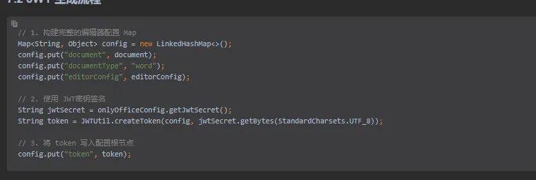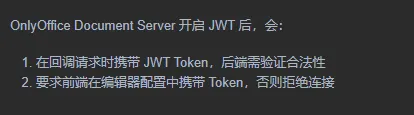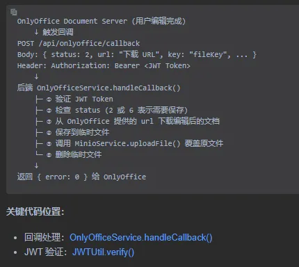 JWT 流:生成 Token → 前端传递给 OnlyOffice → 回调时验证