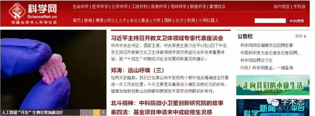 科学网是由中国科学院、中国工程院和国家自然科学基金委员会主管,中国科学报社主办的综合性科学网站,主要为网民提供快捷权威的科学新闻报道、丰富实用的科学信息服务。