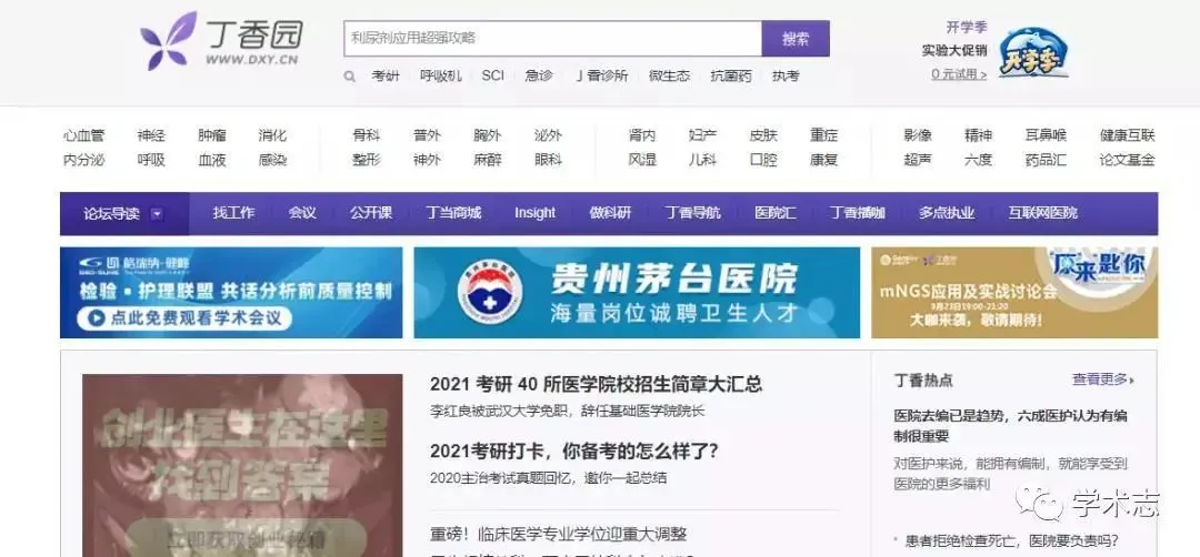 丁香园是面向医生、医疗机构、医药从业者以及生命科学领域人士的专业性社会化网络,提供医学、医疗、药学、生命科学等相关领域的交流平台、专业知识、最新科研进展等等。