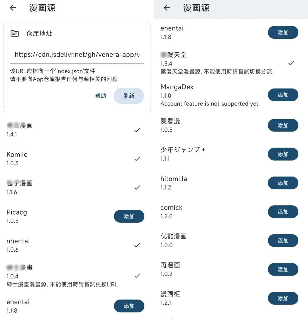 不用全都添加上,找几个经常使用的漫画源添加就可以了。