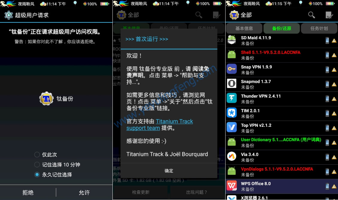 备份手机上的所有程序、保存每个程序的数据、Android市场链接等等均可以通过钛备份/还原操作。懂的人自然懂不懂的听完老夜哔哔半天也知道是个好东西,钛(元素名Ti),是一种高档的金属,特点是重量轻但是强度大,相当稳固,以钛为名不就是很好的暗示着稳固而强大的特色吗!作为安卓老牌备份神器此次老夜为大家分享的是专业增捐赠版,同时使用此应用手机需要授予钛备份root权限,强烈推荐的一款玩机备份工具!