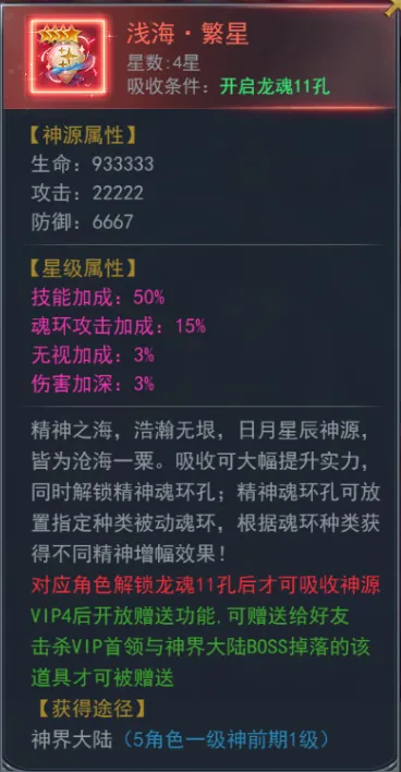 3、神源可通过神界大陆BOSS掉落和周末特惠获得,部分掉落的神源可进行赠送。