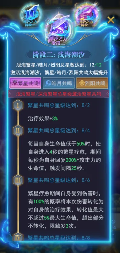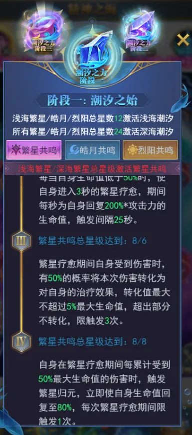 2、浅海潮汐之力:大幅提升繁星/皓月/烈阳共鸣效果。