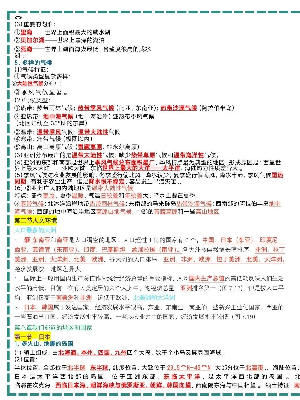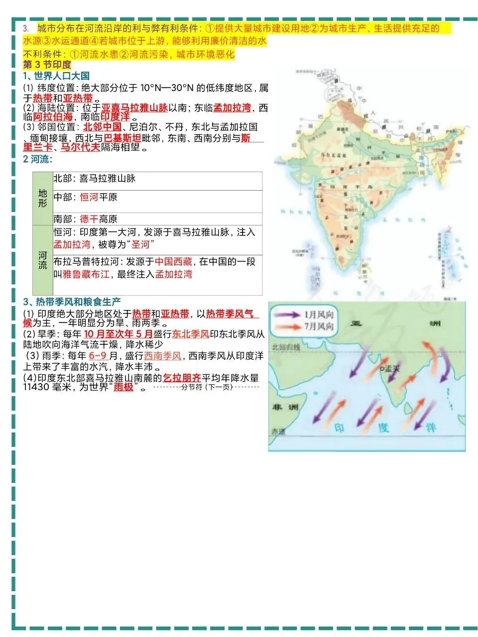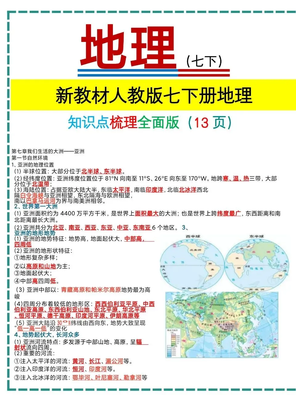今天整理了2026 年七下地理新版必背知识点总结,电子版可打印!
