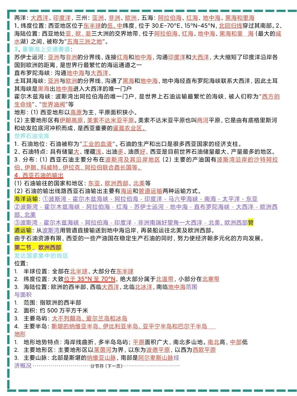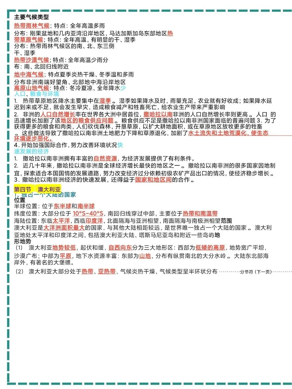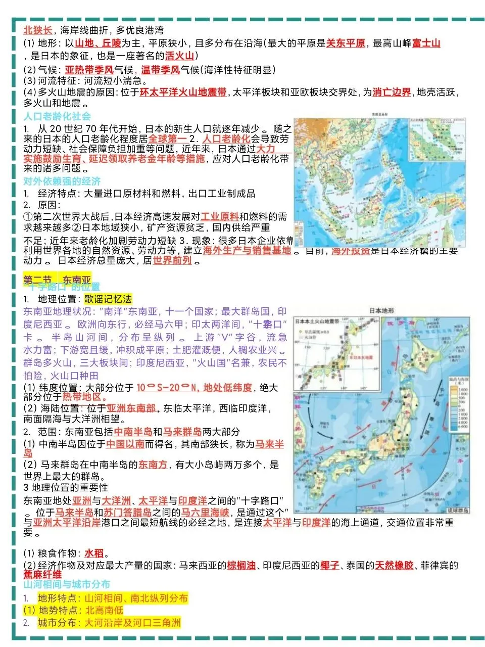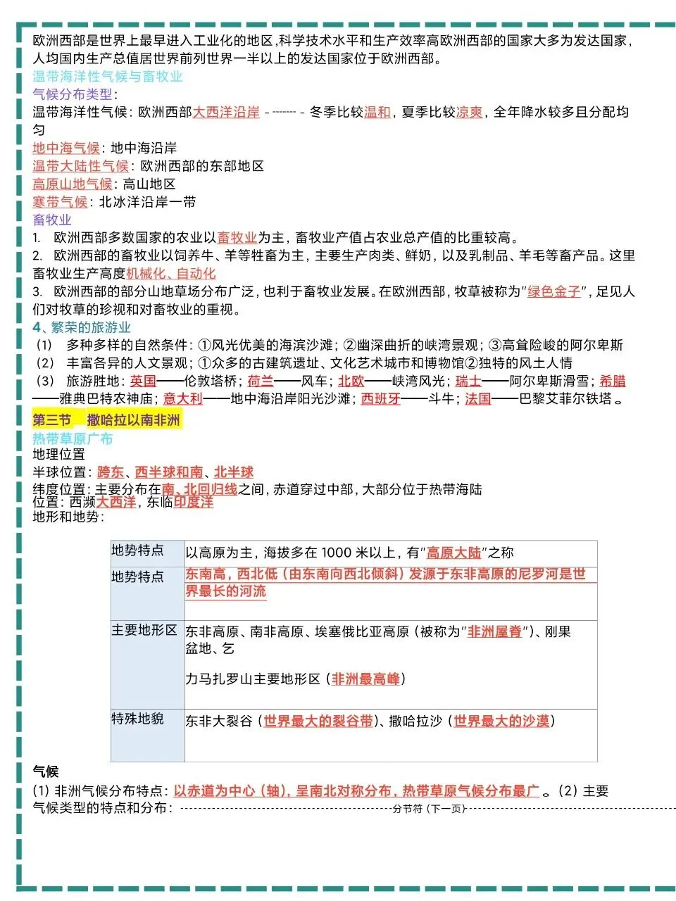 今天整理了2026 年七下地理新版必背知识点总结,电子版可打印!