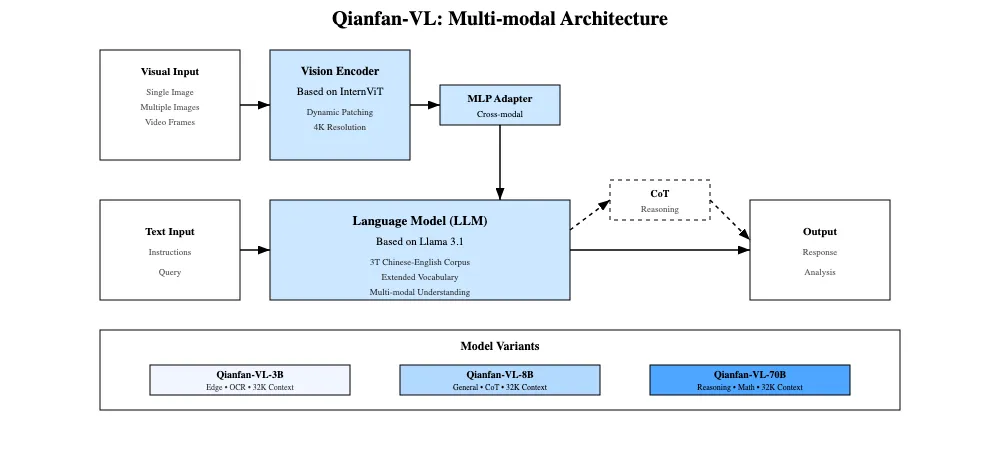 Qianfan-OCR基于Qianfan-VL的多模态桥接架构改造,将所有文档处理任务融入单一模型,遵循经典的Vit【Qianfan-ViT(高分辨率自适应编码)专为文档OCR的高密度文本、小字体、复杂布局设计,核心特性是AnyResolution动态分块】+MLP(两层带GELU激活的MLP)+LLM【Qwen3-4B:平衡复杂文档推理能力和生产级部署效率】架构。