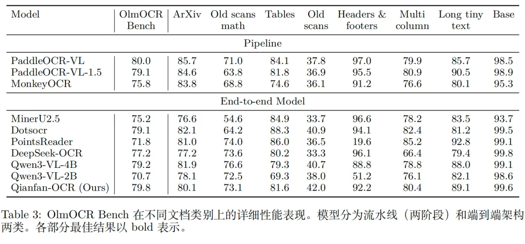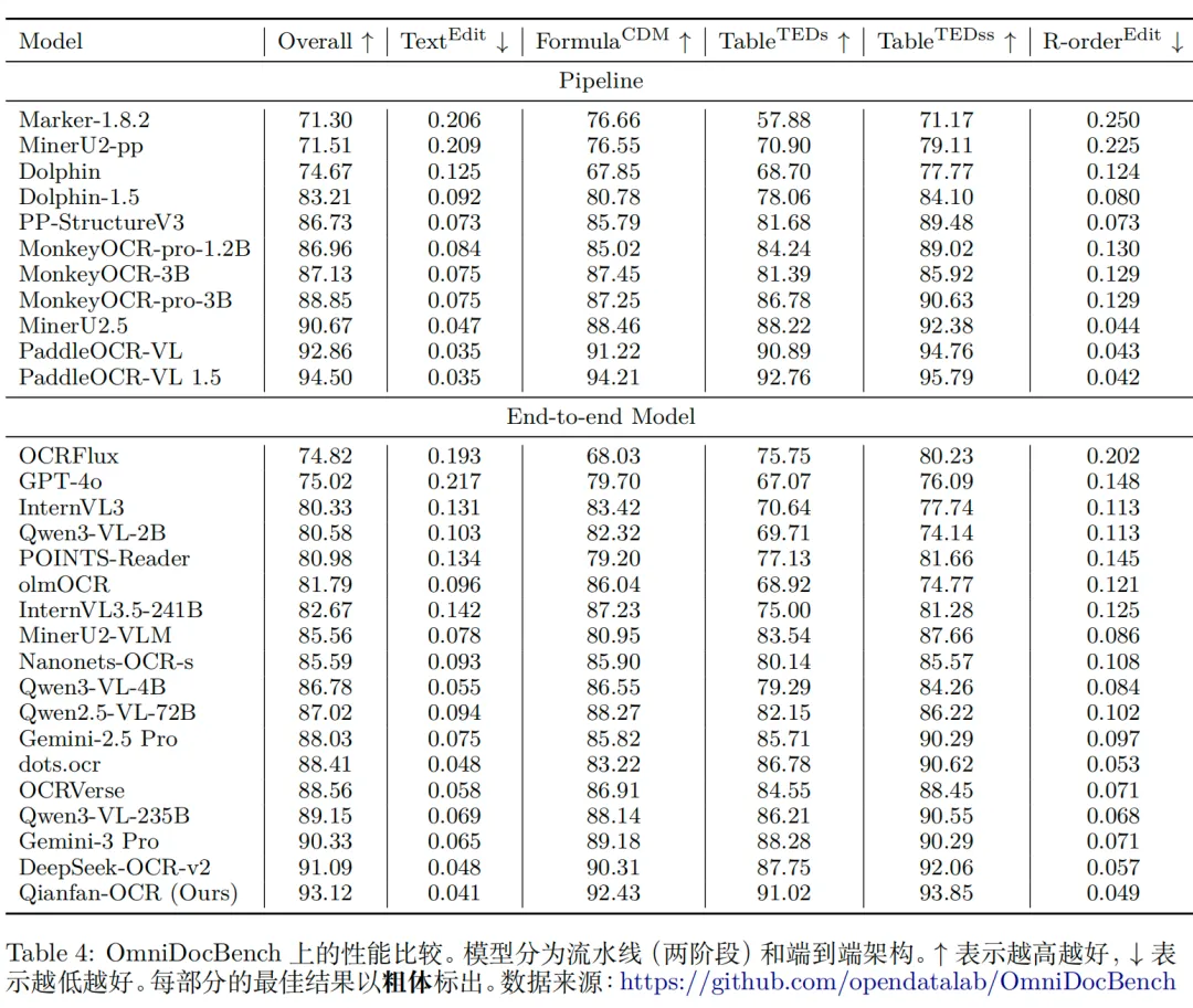 继续跟进【文档智能】解析进展。在前期专栏中总结过,文档解析范式分三个:(1)基于ocr-pipeline;(2)基于layout+vlm的两阶段;(3)基于vlm端到端;Qianfan-OCR是一个4B参数量的端到端的多模态文档解析模型,解决了传统OCR流水线的误差传播、视觉上下文丢失、部署复杂等问题,其方法体系围绕端到端架构设计、Layout-as-Thought机制、大规模数据合成、四阶段渐进式训练四大核心展开,下面来看看方案。