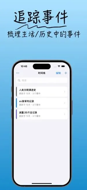 hello,大家好!今天分享一款设计精美的内购限免神器——《时间成线》,这是一款事项记录提醒软件,核心功能是以时间线显示各事项,可以直观的记录,整理生活、工作、学习中的各类事件。