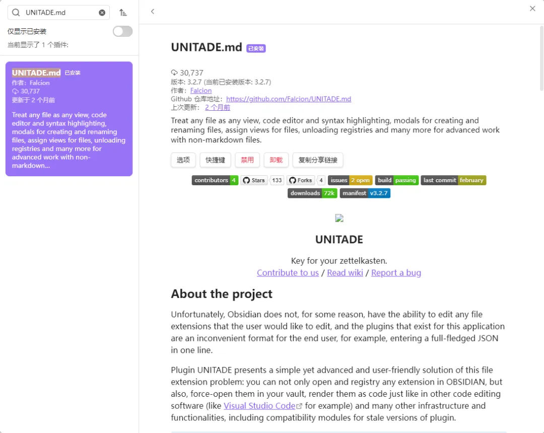 • UNITADE:Obsidian 社区插件市场直接搜索,一键安装 -
