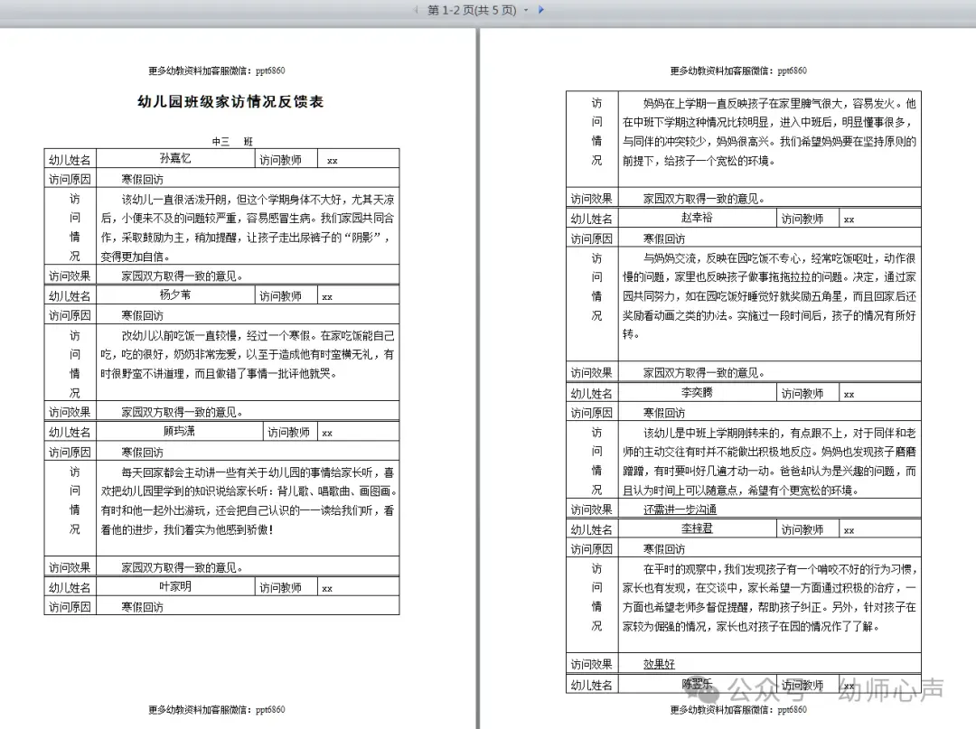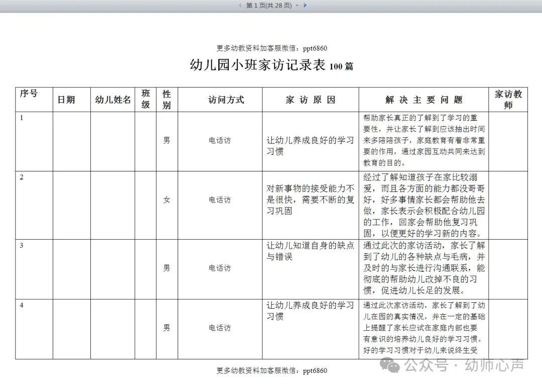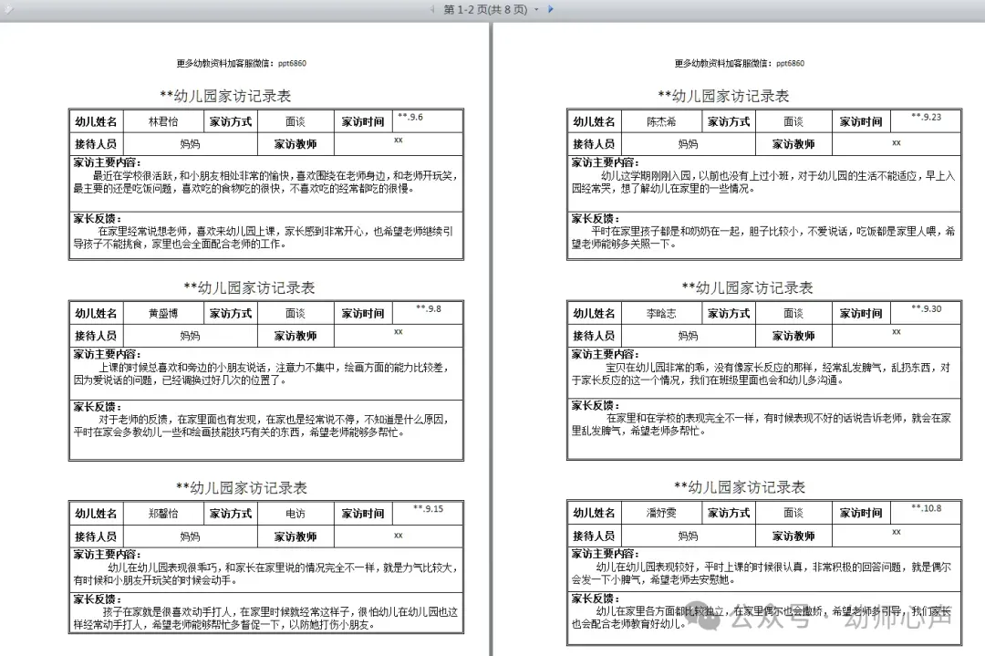 幼儿园家访记录,电子版可编辑