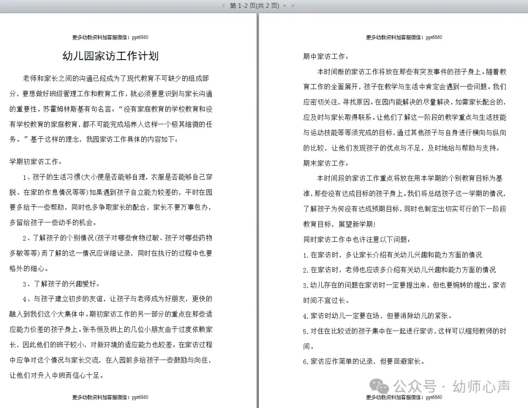 家访工作计划部分预览