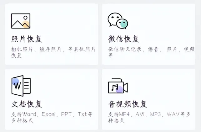 首先是微信恢复功能,考虑到该功能需要收费,小编不多做介绍,重点说一下照片恢复和音频视频文档恢复功能。