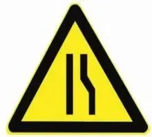 分析:警告标志右侧变窄,行车注意安全。用以警告车辆驾驶人注意前方车行道或路面狭窄情况,遇有来车应予减速避让。设在双车道路面宽度缩减为6m以下的路段起点前方。