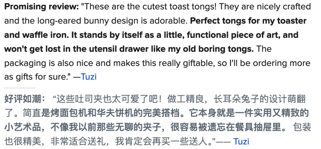 没错,复活节选品要开始准备了。我们在BuzzFeed热门复活节推荐礼品清单里看见了这款造型别致的兔子夹,其中有一条评论可谓激情安利: