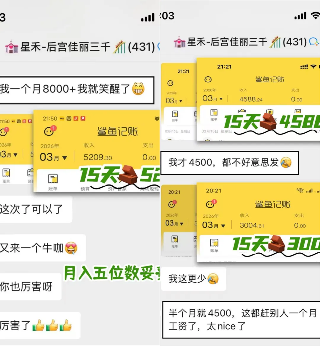 下面随便给大家看一下日收入跟打卡情况