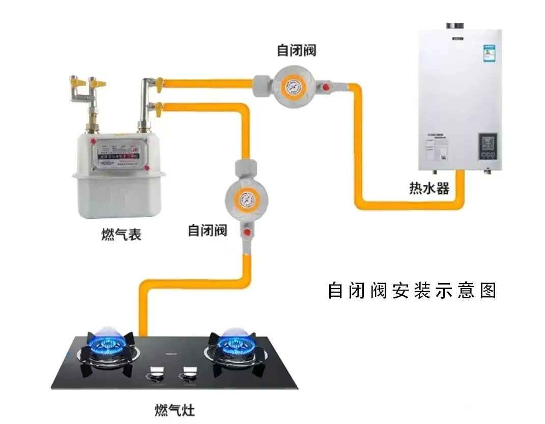 当管道内供气压力异常或连接的燃气管道脱落时,自闭阀能够自动关闭。自闭阀关闭后,在供气恢复正常的情况下,用户手动开启即可恢复用气。