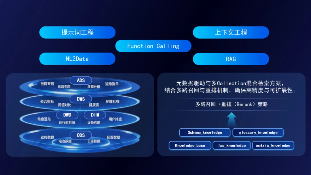 知识增强层:构建锂电行业专属垂直知识库,沉淀专业知识与运维经验,结合向量检索与Prompt模板优化,杜绝AI泛化回答,提升解答专业性。