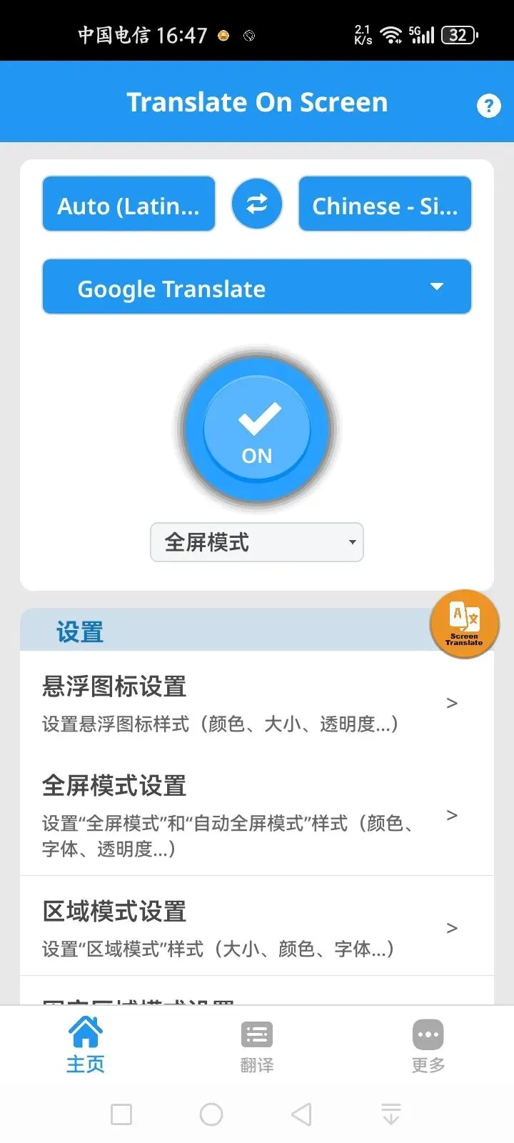 更赞的是‘自动全屏模式‘——当检测到你正在阅读的内容需要翻译时,它会智能地自动进入全屏翻译状态,省去了手动开启的步骤,体验非常流畅。