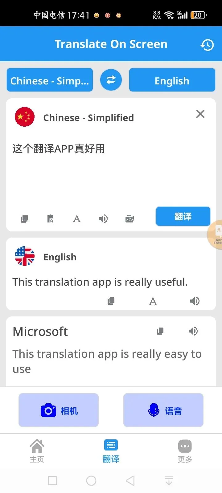 除了以上核心功能,这款APP还提供了丰富的个性化设置选项。从主页到翻译界面,再到更多功能模块,每一个细节都可以根据你的使用习惯进行调整。无论是界面风格、翻译语言偏好,还是操作手势,都能打造出最适合你的专属翻译工具。
