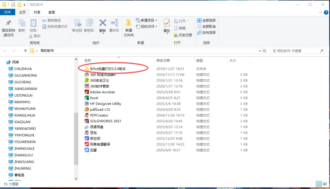 这里注意了,自己要找到上面我说的那个批量打印的文件夹,选中里面这个批量打印的插件了。我在给你们温故一下之前的文件夹,我说你们自己可以随便放在桌面或者是你们不碍事的地方。我放的是我自己建的文件夹,我在那个窗口找到这个文件夹,点击进去。