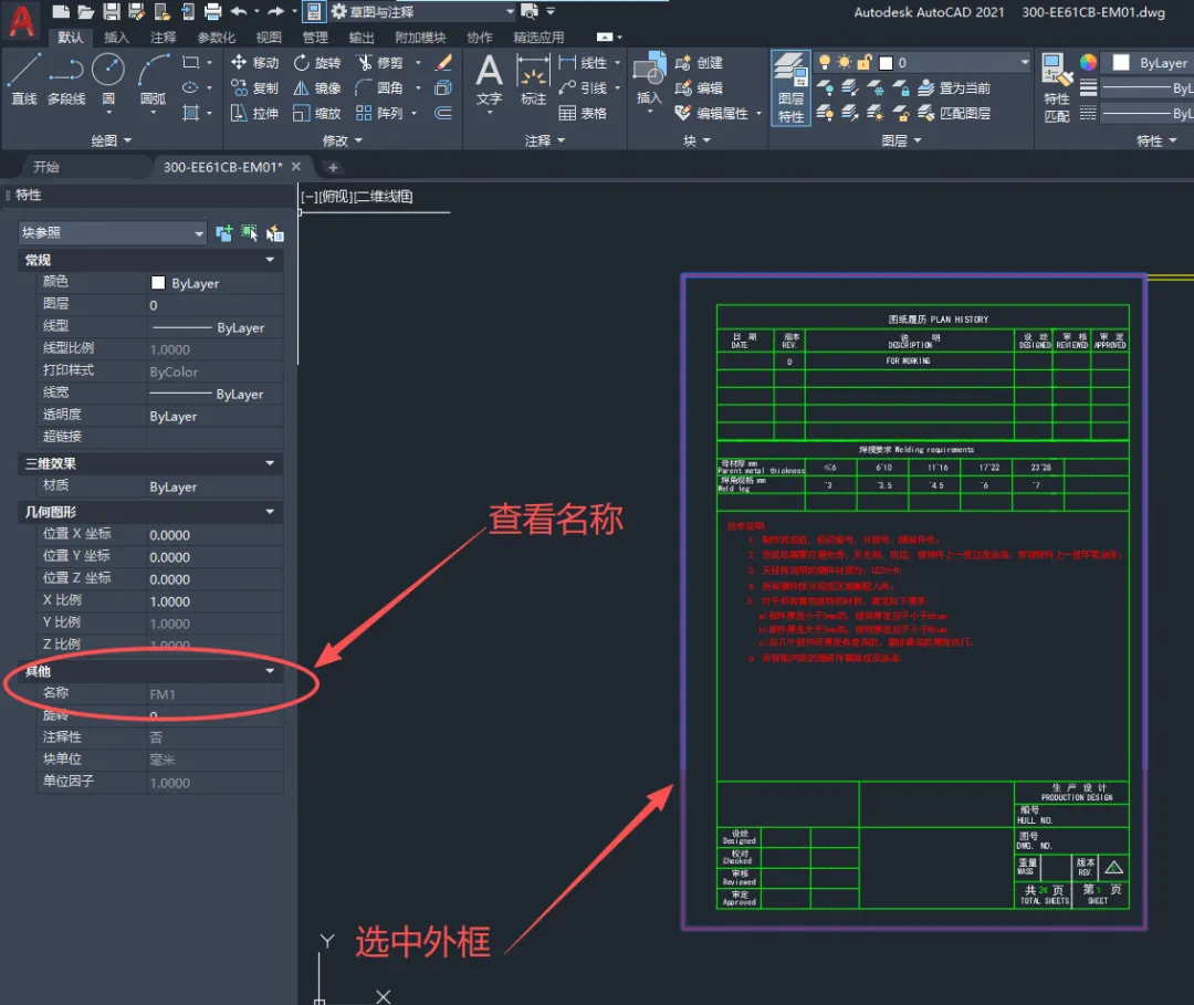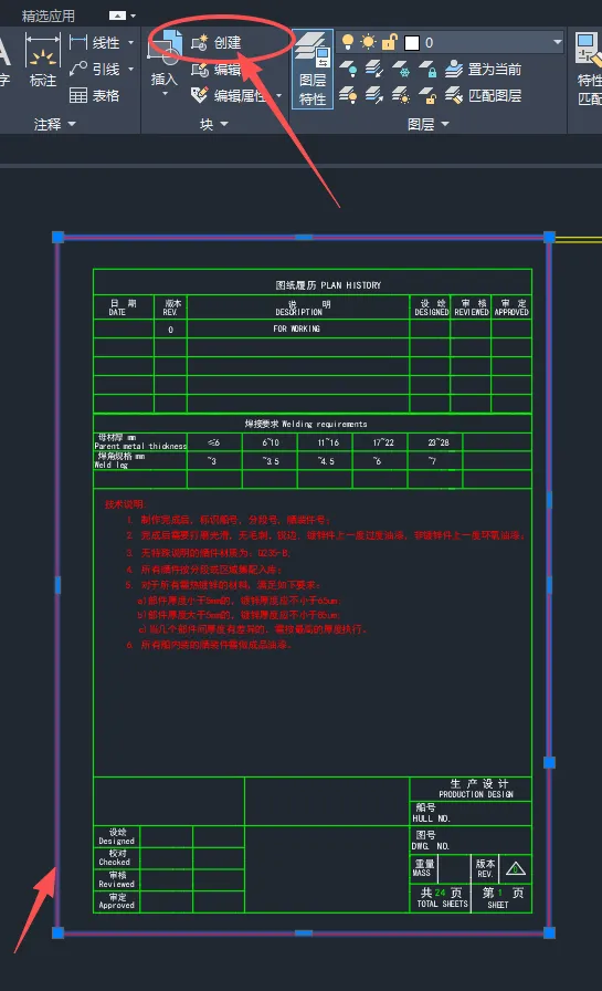 我们首先看第一张制作图封面,我们想去使用快捷插件进行打印,首先就要把这这个制作图的外框进行一个块的创建。