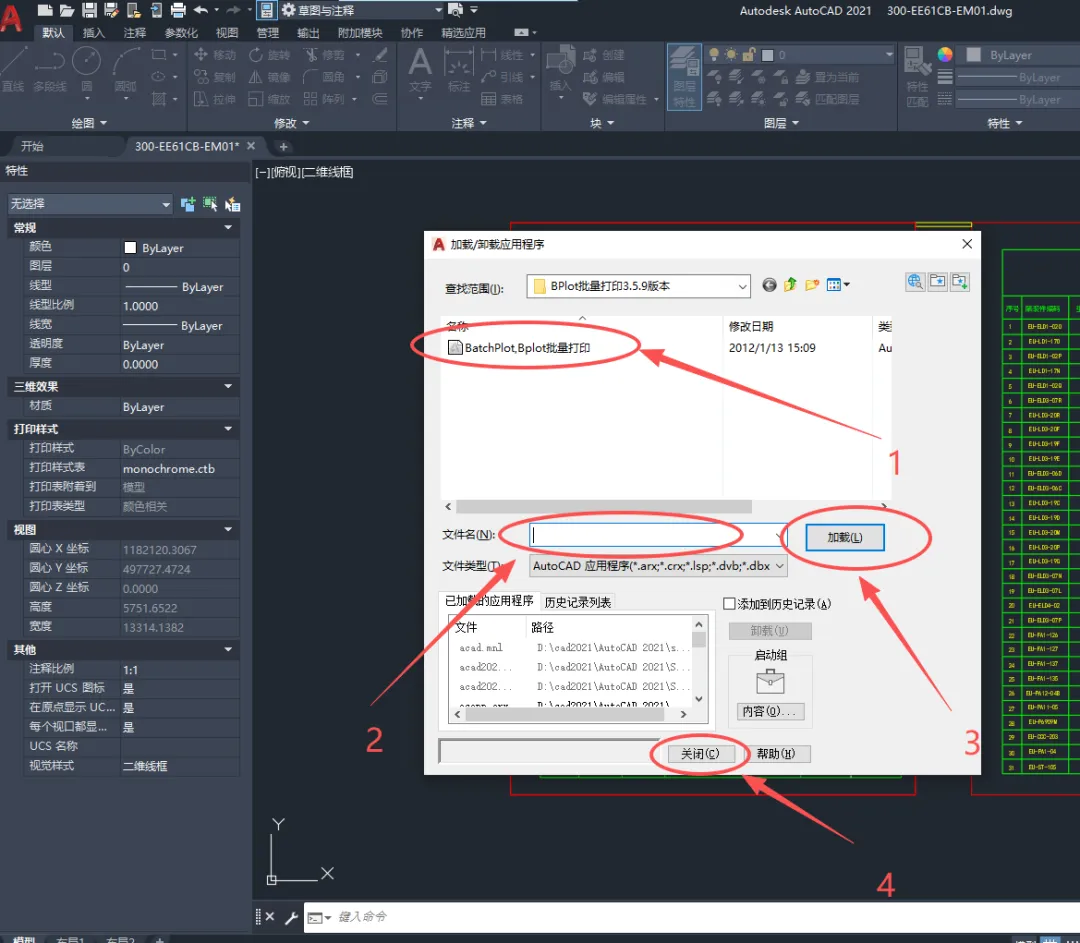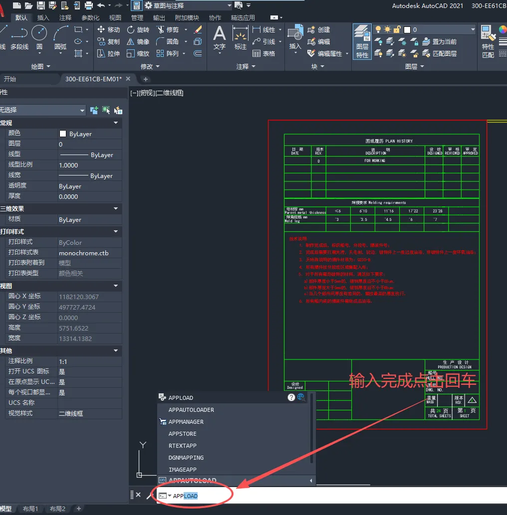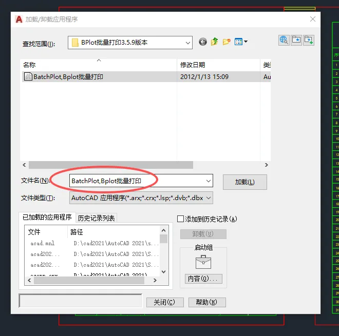 好的我们查看后没有问题就进行下一步,把CAD快速打印的插件给调出来,这个就需要用到CAD里面的命令栏了,我们在命令栏里面输入APP三个字母,点击键盘上的回车,然后跳出下面的窗口。
