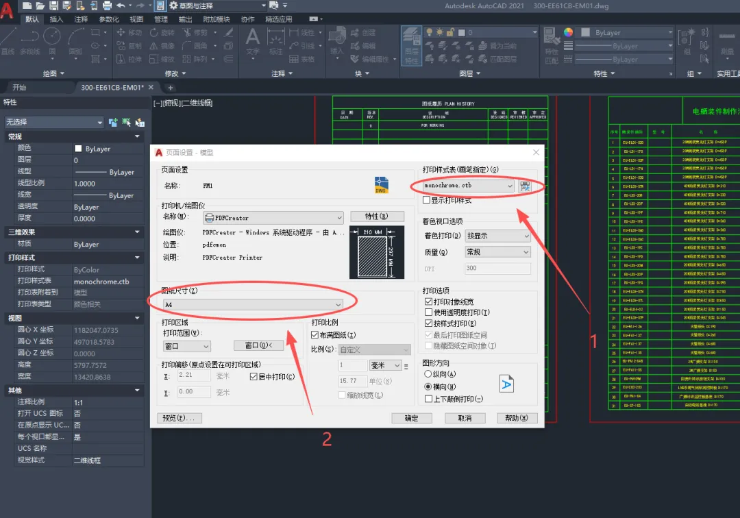 下面是选择打印样式,默认是黑白的线条打印,这个我就不说了,基本上都是黑白的,彩色的就去网上搜一下,2是更改打印纸张,我是要的A4的打印纸张,所以这里选择的是A4。