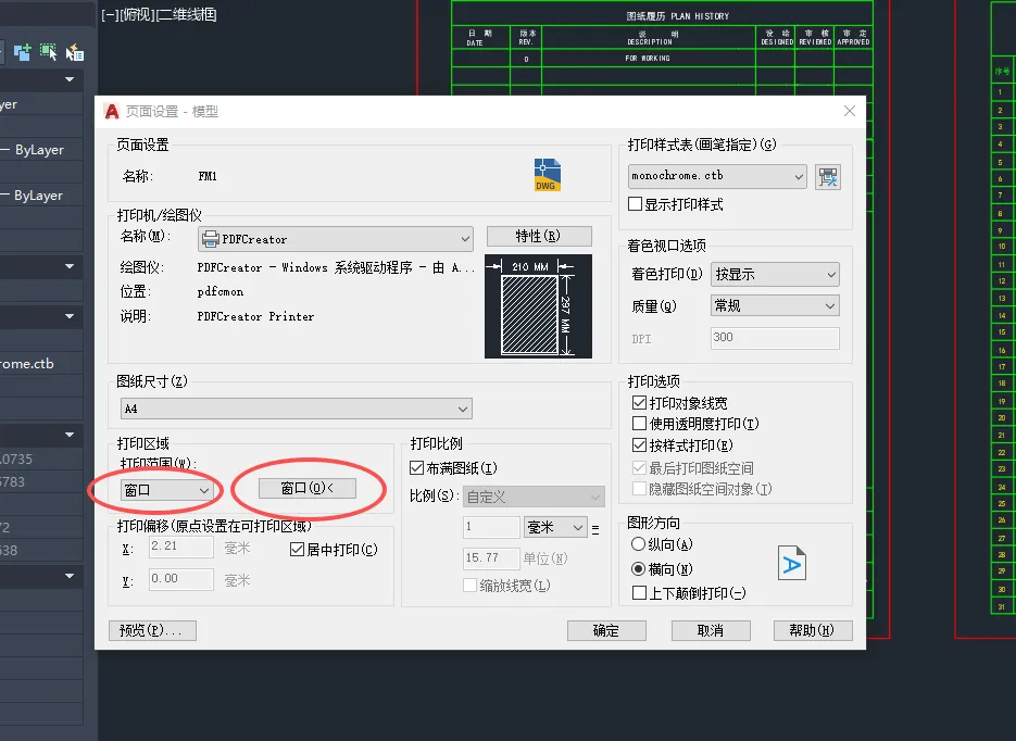点完窗口就会回到CAD里面,并且CAD出现灰蒙色,此时我们要拿鼠标框选封面块的窗口范围。