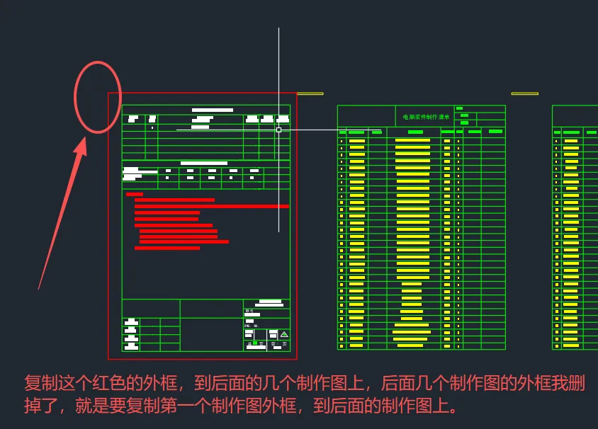 把一张制作图的外框FM1块复制到后面的几个制作图上