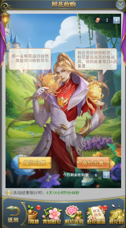 出售选择的鲜花星级越高,获得的鲜花币越多。
