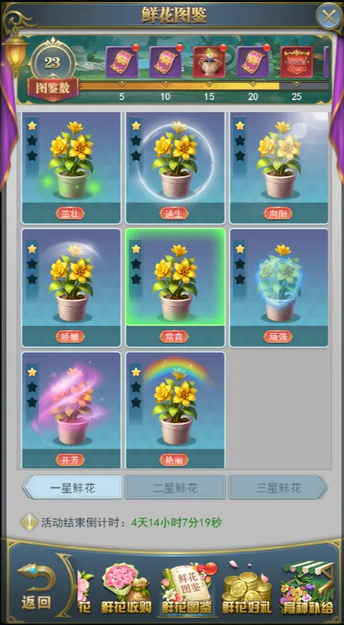 活动期间,获得指定星级的鲜花,且包含图鉴上的指定特质,则会激活该鲜花图鉴。