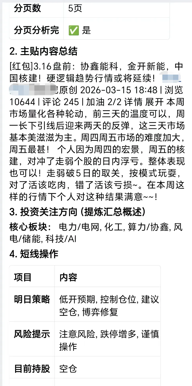 我前两周在 MiniMax 云上做了个“盯盘外挂”。说是盯盘,其实是因为我在炒谷这件事上还比较小白。那最省心的办法,就是先跟着大佬喝点汤。我就在头部谷子论坛里找了几个粉丝量最大的博主,看他们最新帖子里的复盘和仓位。为了让信息更靠谱一点,我还会交叉对比不同人的帖子,尽量去找确定性。但这套人工方法有个很明显的问题:特别费时间,而且这个领域又特别吃时效,等你全看完,汤都快凉了,所以我就试着让 OpenClaw 来接这个活。