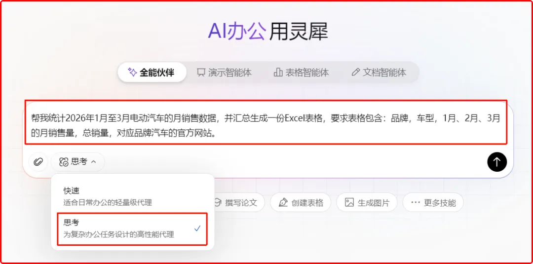 在全能伙伴模式下,WPS灵犀能够自动根据你输入的任务,来调用需要的智能体,并自主规划任务,交付结果。