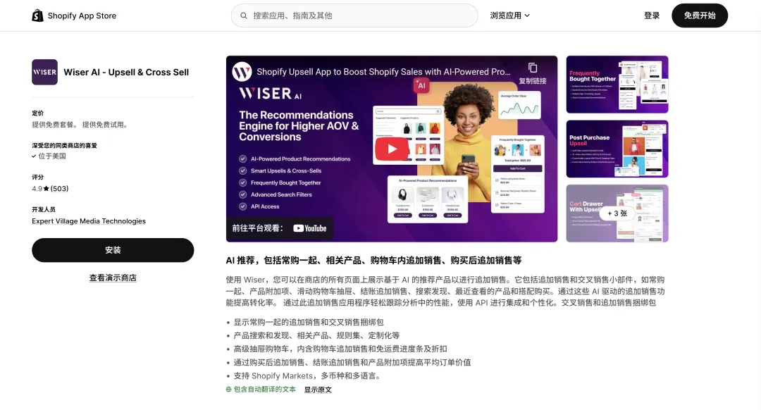 运营大白话: 它的 UI 特别干净,装上就能用。它最擅长那个“经常一起购买”的小模块,比如客户看衬衫,它就顺带推条领带,非常自然,不讨人嫌。