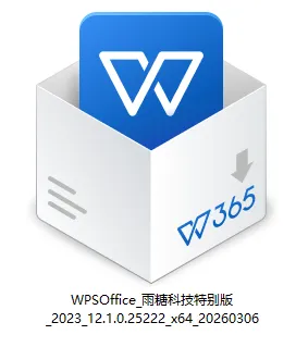 雨糖科技 1.8.2.12344_20260307 特别版,跟进官方最新版本更新, 补充公文组件的缺失字体, 新增内测功能, 进一步完善程序配置。免激活,去水印,永久授权,完整功能优化增强, 基于官方WPS2019专业版打包,自动调用安装脚本写入终身授权序列号。序列号采用博湖县政府专用版: TJ3GN-9NTGQ-GLF7C-YEN8X-TJWML。集成VBA组件、终身授权序列号、安装完毕即WPS永久激活专业增强版。去广告优化、去我的电脑WPS云盘、保留登陆和云同步。去界面左侧:日历、WPS便签、会议、统计表单 (广告)。去应用中心:分享协作功能网页入口(会议、统计表单)。彻底去升级:无版本更新提示,检查更新永远都是最新版。安装过程自动剔除桌面和我的电脑WPS云盘虚拟盘符入口。安装过程自动删除升级组件并清除检查升级的计划任务项。下载安装包后先解压,然后双击或以管理员身份运行“WPSOffice2019ProPlus_11.8.2.12330_mefcl.exe”,按提示步骤进行安装即可。安装完成后,桌面上会出现四个图标。随便打开一个工具即可使用。