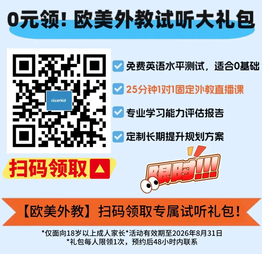 选课程时,我建议家长不要盲目追求“贵的”或“火的”,贴合孩子基础和兴趣才是关键。像nicekid这种固定外教模式,可以让孩子和老师长期建立关系,学习连贯性更好。如果想先让孩子试试这种模式,复制打开链接/扫试听码就能领取试听