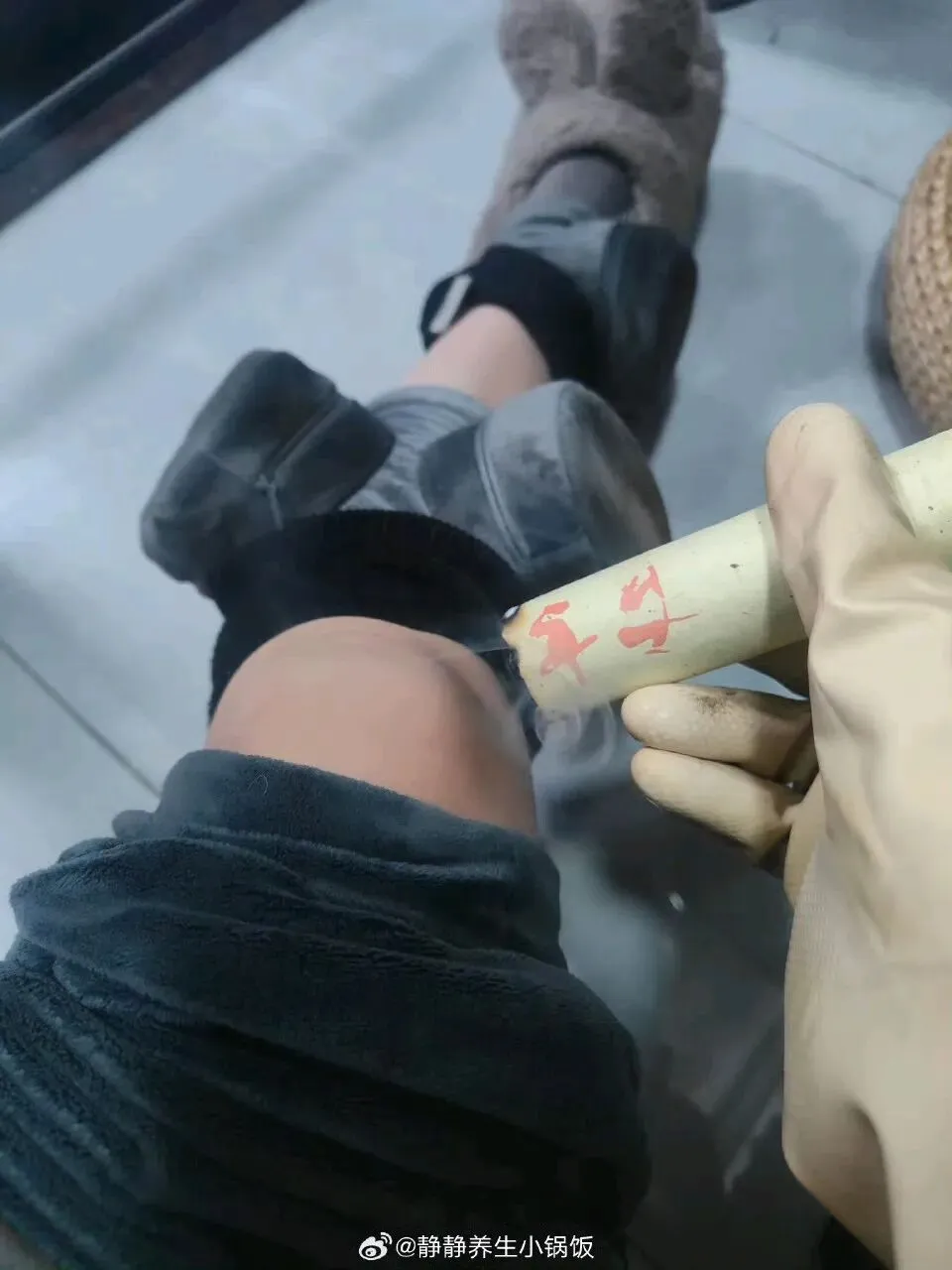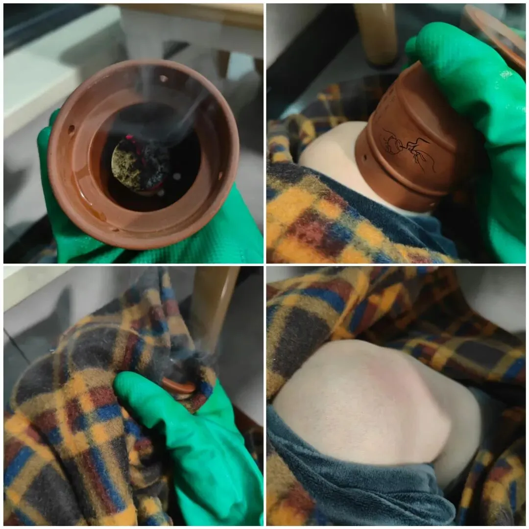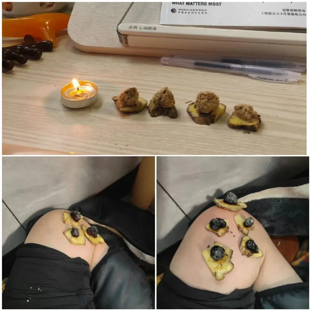 实际灸起来,是不仅烟味大,且艾柱很燃烧很快,需要时刻关注取艾柱,不然艾烧到姜就很容易烫到膝盖,所以换取艾柱的场景,那个手忙脚乱!